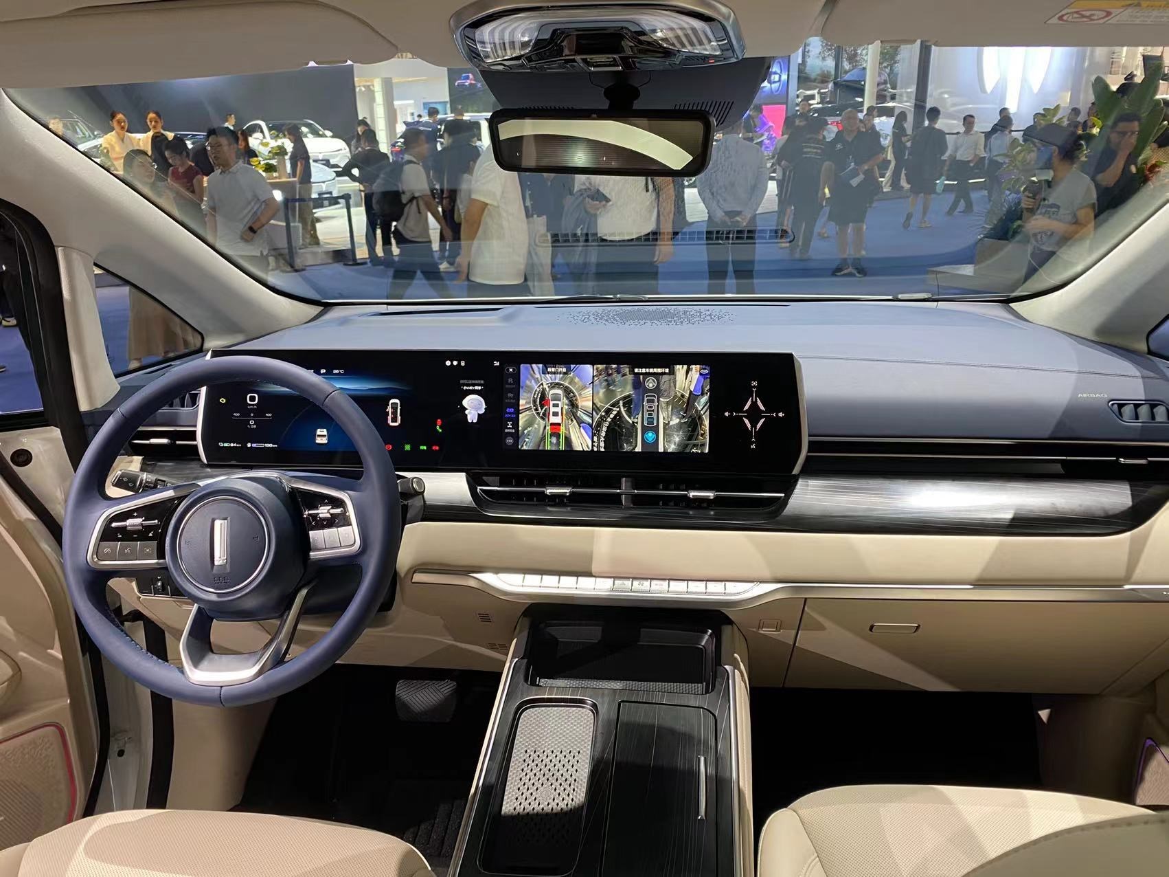 進(jìn)入車(chē)內(nèi),最引人矚目的便是由三塊12.3英寸屏組成的聯(lián)屏系統(tǒng),并內(nèi)置高通驍龍8155芯片斑馬智行系統(tǒng)。主副駕車(chē)門(mén)上還配備了電子后視鏡(選裝件)的車(chē)內(nèi)顯示屏,座艙的科技感濃重。整個(gè)內(nèi)飾風(fēng)格素雅簡(jiǎn)約,中控臺(tái)和中央通道區(qū)域使用了大面積皮質(zhì)包覆,質(zhì)感豪華。